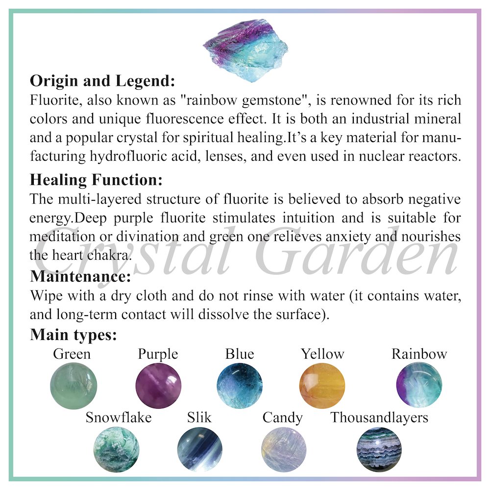 💖Warm reminder: Fluorite has a relatively low hardness. Please avoid colliding it with other hard objects. When cleaning, use a soft cloth.